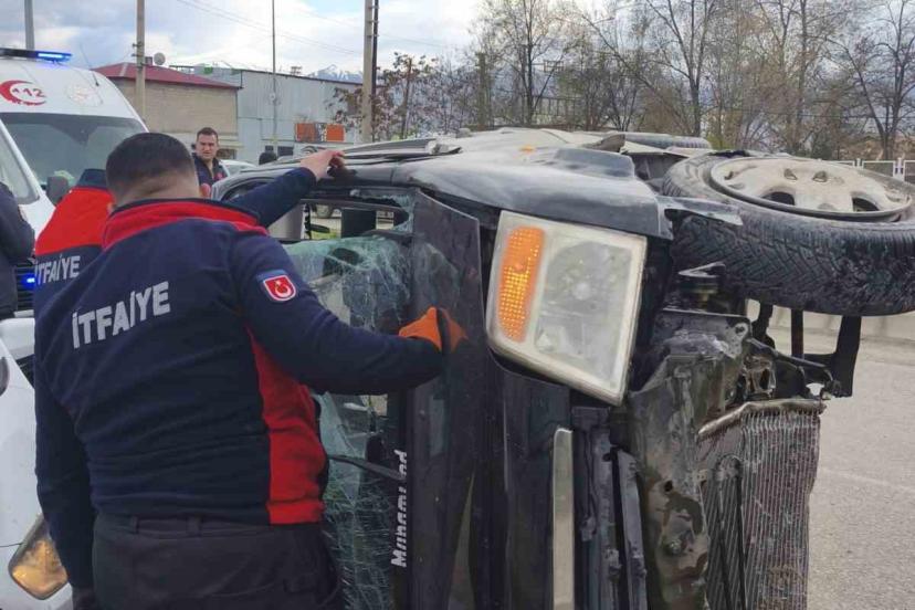 Iğdır’da meydana gelen kazada ticari araç, sürücüsünün kontrolü kaybetmesi sonucu refüje çarparak takla attı. Kazada araçta bulunan iki kişi yaralandı.