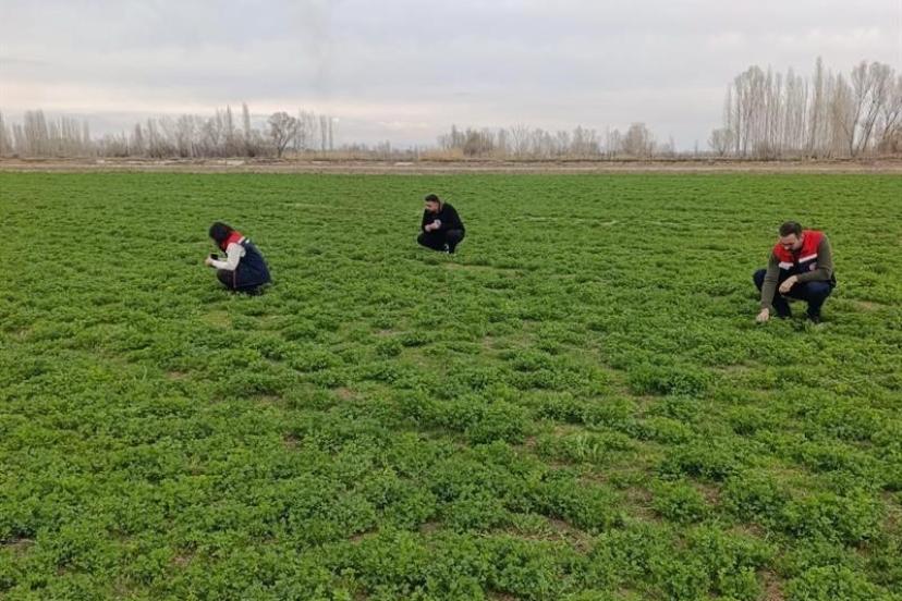 Iğdır’da yonca üretim alanlarında yapılan kontrollerde, Bitkisel Üretim ve Bitki Sağlığı Şube Müdürlüğü teknik personelleri tarafından yürütülen 2026 yılı survey çalışmaları kapsamında yonca hortumlu böceği zararlısı tespit edildi. Bunun üzerine yetkililer, zararlıya karşı kimyasal mücadele döneminin başladığını duyurdu.