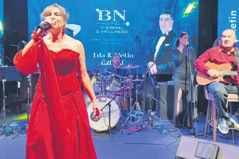 Eda& Metin Özülkü çifti yılbaşı gecesi Mersin'deki otelde sahneye çıktı. Sanatçıların ikiz oğulları Baran ve Volkan Özülkü, yılbaşı programında anne ve babalarına sahnede eşlik etti.