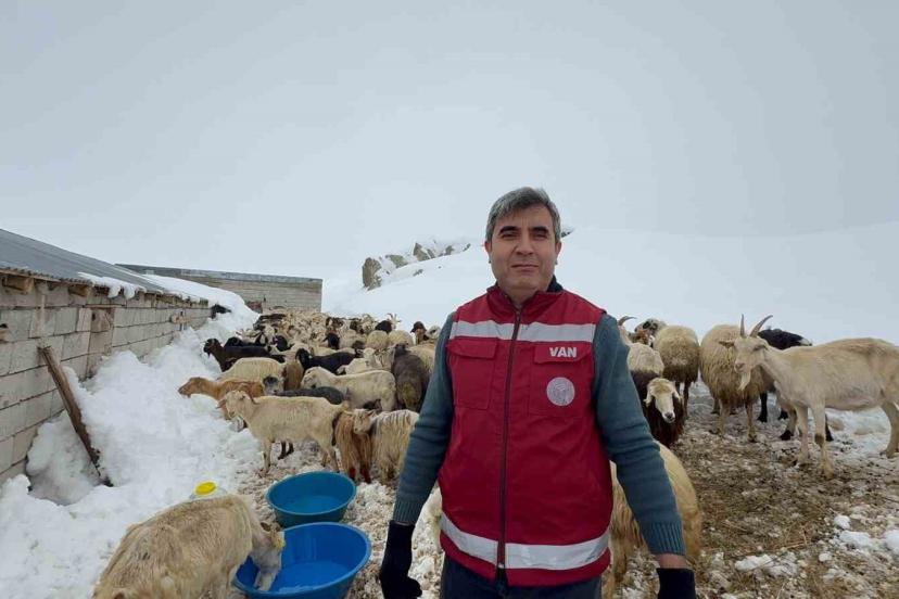 Muradiye İlçe Tarım ve Orman Müdürü Harun Altunkaynak, "Şu anda ilçemize bağlı Devetaş köyünün Sabunsata mevkisindeyiz. Buraya keçi yetiştiricisi bir üreticimizin hayvanlarının su ihtiyacını gidermek amacıyla geldik. Sert hava muhalefeti nedeniyle suları kesilmiş ve hayvanlar susuz kalmıştı. Biz de bu eksikliği gidermek amacıyla ekip arkadaşlarımızla beraber üreticimize su getirdik. İnşallah eksiklerini gidermeye devam edeceğiz" dedi.