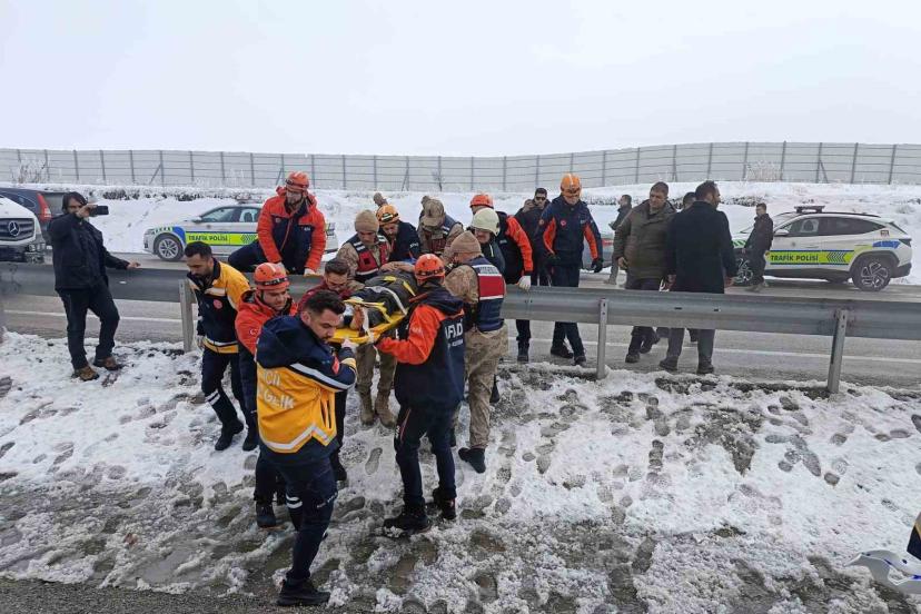 Kaza sonrası yol trafiğe kapanırken bölgede etkili olan yoğun sis trafiği durma noktasına getirdi.