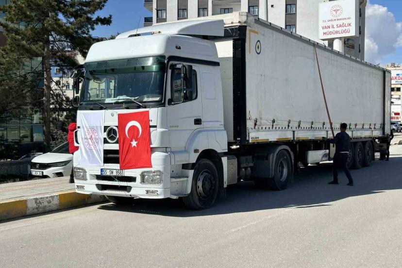 Tıbbi malzeme taşıyan 3 yardım tırı, Van’dan İran’a gitmek üzere yola çıktı.