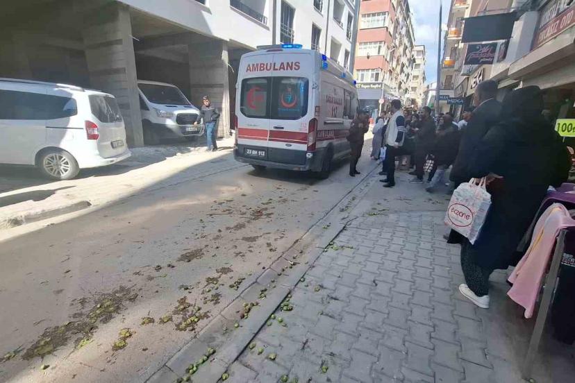 Elazığ’da manevra yapan iş makinesinin çarpması sonucu dengesini kaybederek yere düşen seyyar satıcı, sağlık ekiplerinin müda...