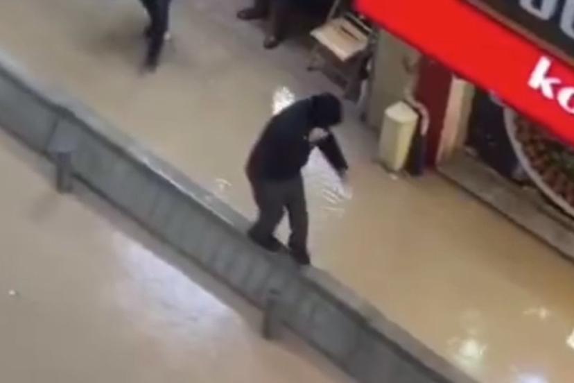 Suyun içine girmemek için mücadele veren vatandaşları o anları da bölgedeki bir başka vatandaşın kamerasına yansıdı.
