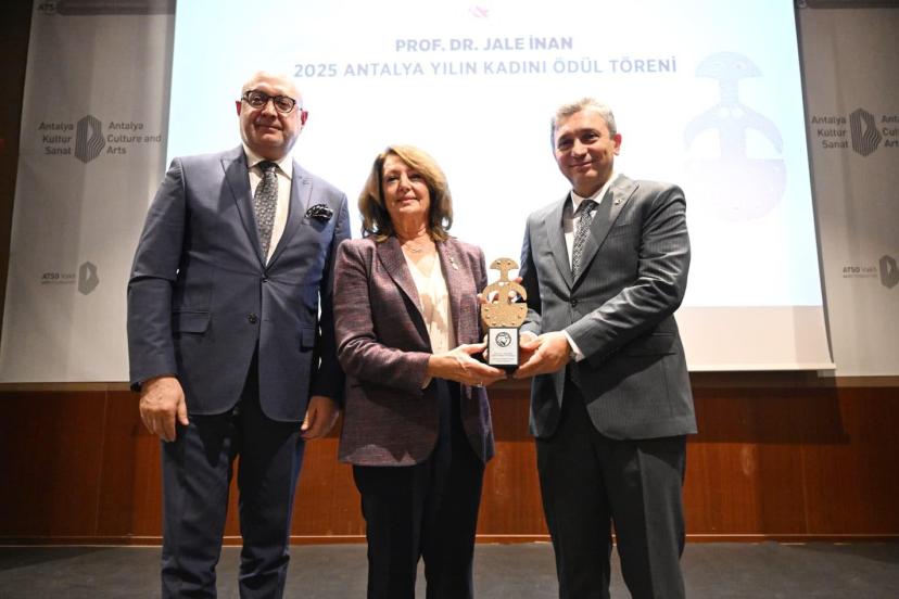 Türkiye'nin ilk kadın arkeoloğu olan Prof. Dr. Jale İnan adına düzenlenen Profesör Doktor Jale İnan 2025 Antalya Yılın Kadını Ödül Töreni, Antalya Kültür Sanat Oditoryumu’nda gerçekleştirildi. Antalya Tanıtım Vakfı (ATAV) ve Antalya Kadın Müzesi iş birliğiyle bu yıl 10’uncusu düzenlenen törene; Vali Hulusi Şahin, Muratpaşa Kaymakamı İhsan Kara, ATSO Başkanı Yusuf Hacısüleyman, ATAV Yönetim Kurulu Başkanı Emir Gündal ve yılın kadını adayları katıldı.