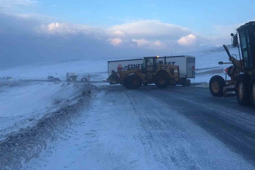 Karda kayan tır yolu ulaşımı kapattı
