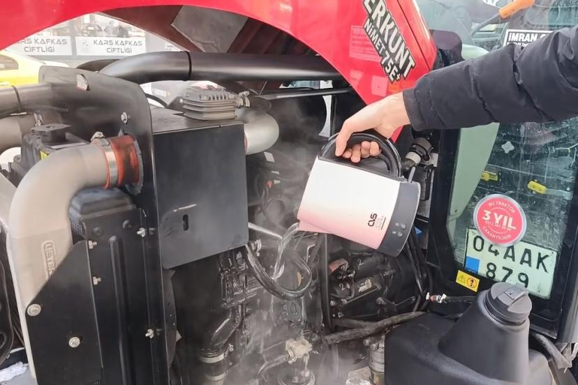 "Donan traktörü sıcak suyla çalıştırıldı"