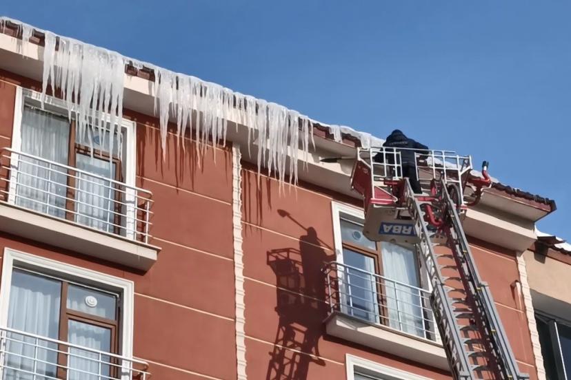 Öte yandan, hava sıcaklığının gündüz saatlerinde hafif yükselmesi ve ardından tekrar don yapmasıyla birlikte bina çatılarında buz sarkıtları oluştu. Yayalar için büyük tehlike arz eden ve boyu yer yer 1 metreyi bulan sarkıtlar için Kars Belediyesi İtfaiye ekipleri teyakkuza geçti. Ekipler, merdivenli araçlarla cadde üzerindeki binaların saçaklarında biriken buzları kırarak kazaların önüne geçti.