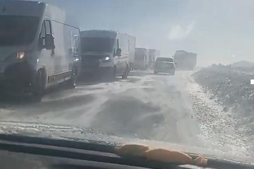 Kars’ta kar yağışının ardından etkili olan tipi Kars-Göle karayolunu ulaşıma kapattı. Kapanan yolda çok sayıda araç mahsur kalırken, bölgeye karayolları ekipleri sevk edildi. Kısa süreliğine trafiğin durduğu yolda karla mücadele ekipleri, yol açma ve tuzlama çalışması başlattı. Ekiplerin müdahalesi sonrası yolda bekleyen araçlar kontrollü şekilde ilerleyerek yollarına devam etti. Trafik yeniden normale dönerken o anlar cep telefonuyla kayıt altına alındı.