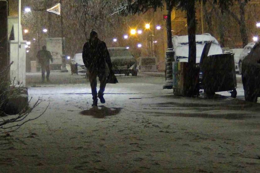Baharı beklerken kışla karşılaşan kentte kar yağışının aralıklarla devam etmesi beklenirken, hava sıcaklığı da yağışla birlikte hissedilir derecede düştü.