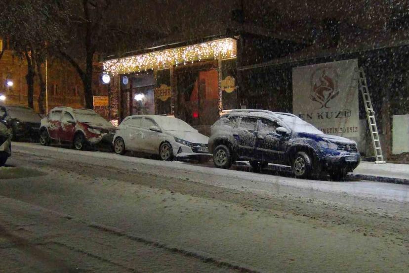 Kars’ta bahar yerini kışa bıraktı: Kar yağışı kenti beyaza bürüdü