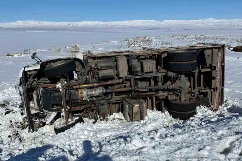 Kars’ta sürücüsünün direksiyon hakimiyetini kaybettiği kamyon yoldan çıkarak şarampole devrildi.