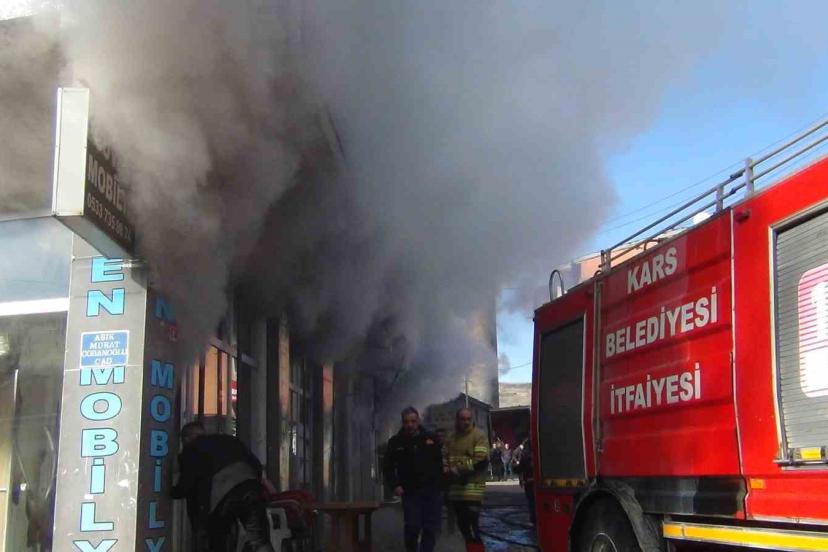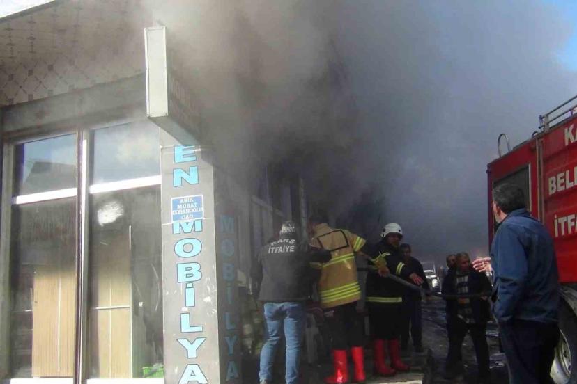 Kars’ta korkutan yangın: Mobilya deposu alevlere teslim oldu