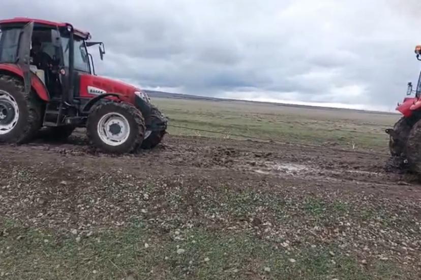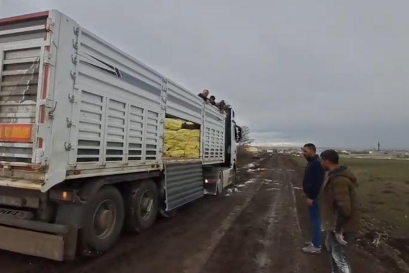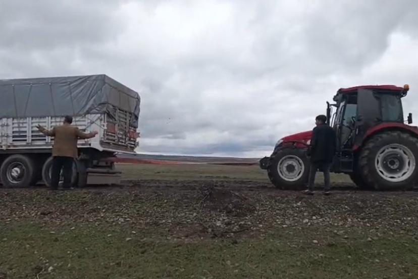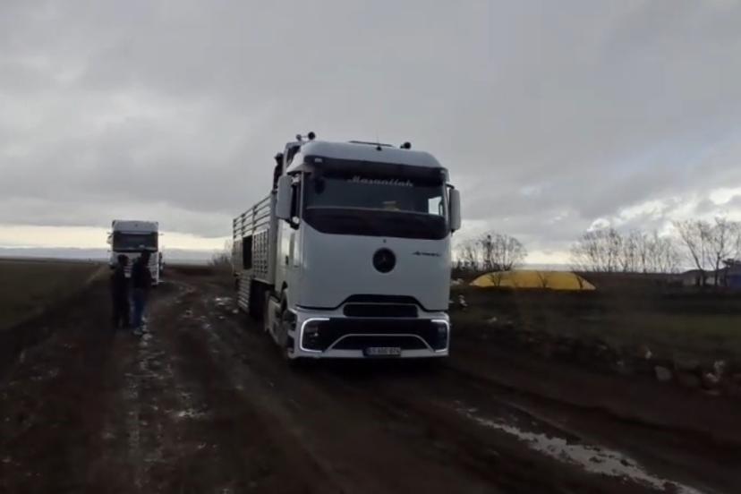 Kars’ın Arpaçay ilçesine bağlı Kuyucuk köyünde faaliyet gösteren tarımsal kooperatife yem ve gübre ulaştırmak üzere yola çıkan ağır tonajlı tır, son günlerde etkili olan yağışlar nedeniyle yumuşayan zeminde ilerleyemedi. Çamura saplanan araç, köy yolunun ortasında hareketsiz kaldı. Durumu fark eden köy sakinleri, tırı kurtarmak için seferber oldu. Traktörlerin de devreye girmesiyle başlatılan kurtarma çalışmalarında zaman zaman zor anlar yaşandı. Yoğun çaba harcanmasına rağmen tırın bulunduğu yerden çıkarılması uzun sürdü. Traktörlerle çekilen tır saplandığı çamurdan kurtularak yoluna devam etti. O anlar vatandaşların cep telefonuna yansıdı.