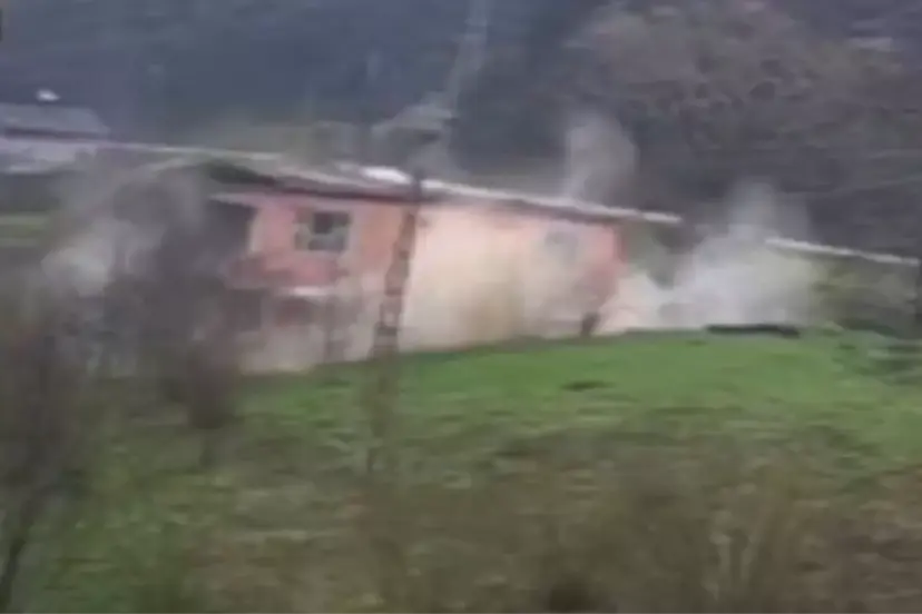 Kastamonu'nun Cide ilçesinde etkili olan kar yağışının ardından heyelan riski nedeniyle boşaltılan 2 katlı ev, çöktü. O anlar güvenlik kamerasına yansıdı.