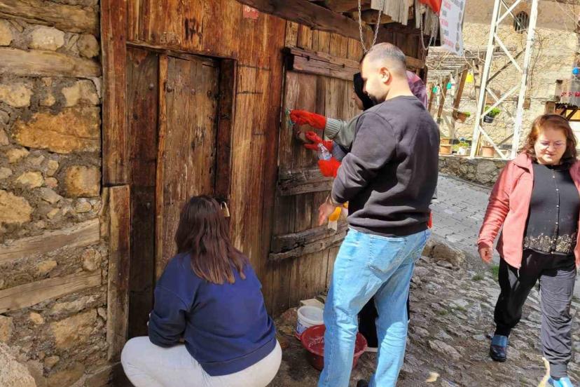 Erzincan Binali Yıldırım Üniversitesi Kemaliye Hacı Ali Meslek Yüksekokulu Mimari Restorasyon Programı öğretim görevlisi Türkan Sarp ve öğrencileri, ilçede özgün cephe özelliklerini koruyan yapılarda saha çalışması yürütüyor.
