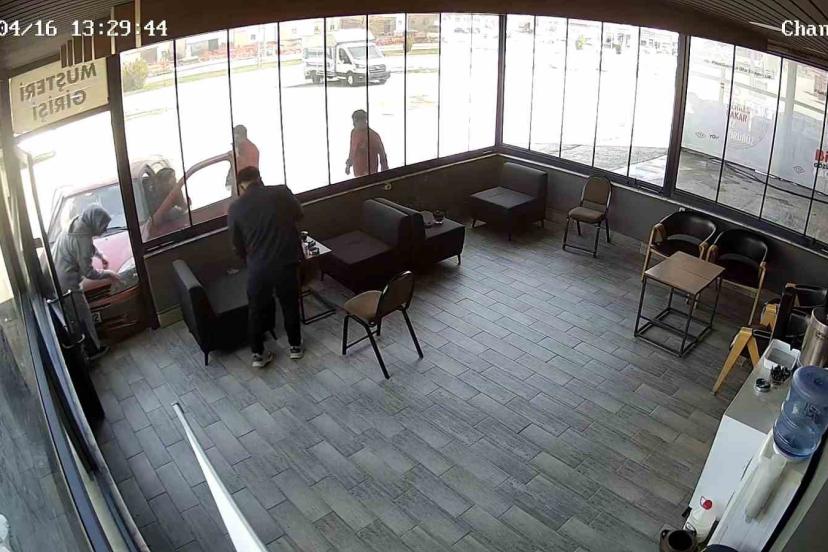 Kimse ne yaptığını anlamadı: Aracıyla etrafında dönen sürücü iş yerine çarptı