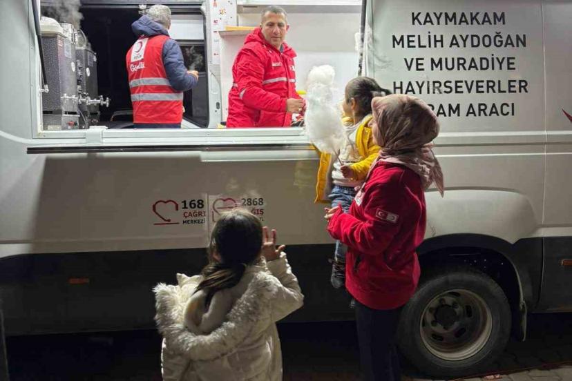 Van’ın Muradiye ilçesinde Kızılay Şubesi tarafından teravih namazı sonrası ikram etkinliği düzenlendi.
