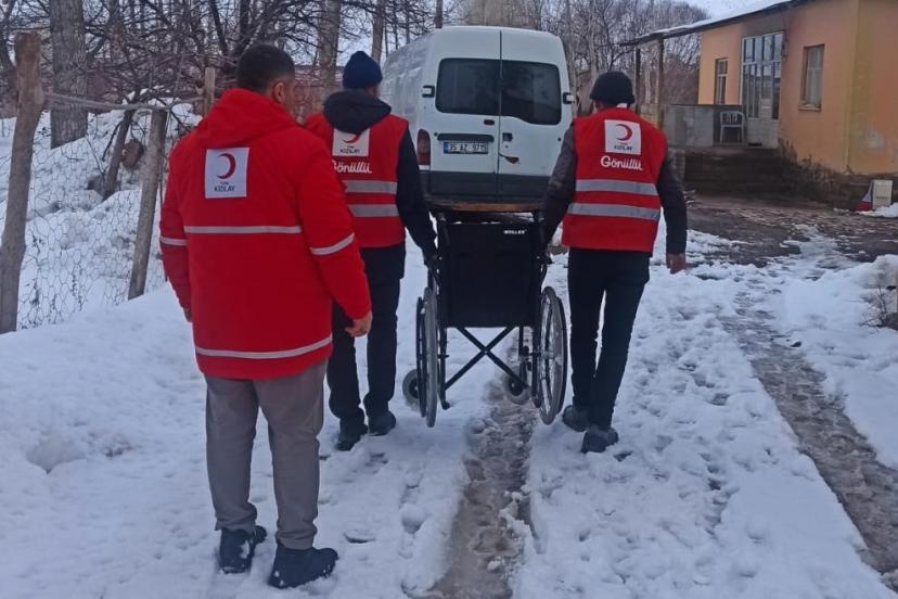 Kızılay Muradiye Şubesi, Kıbrıs gazisi merhum Mehmet Selim Çiftçi’nin eşi Zeycan Çiftçi’ye ihtiyaç duyduğu tekerlekli sandalyeyi teslim etti.