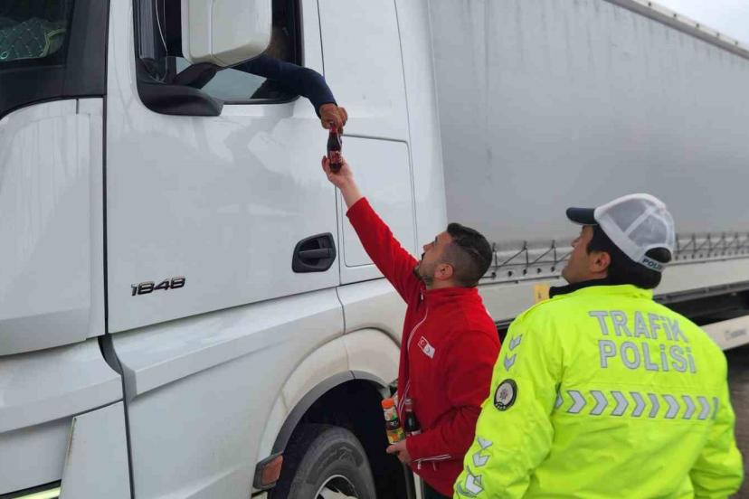 Tunceli’de Türk Kızılay ekipleri trafik uygulama noktalarında görevli polisleri ziyaret ederek, araçlardaki vatandaşlara ikramda bulundu.