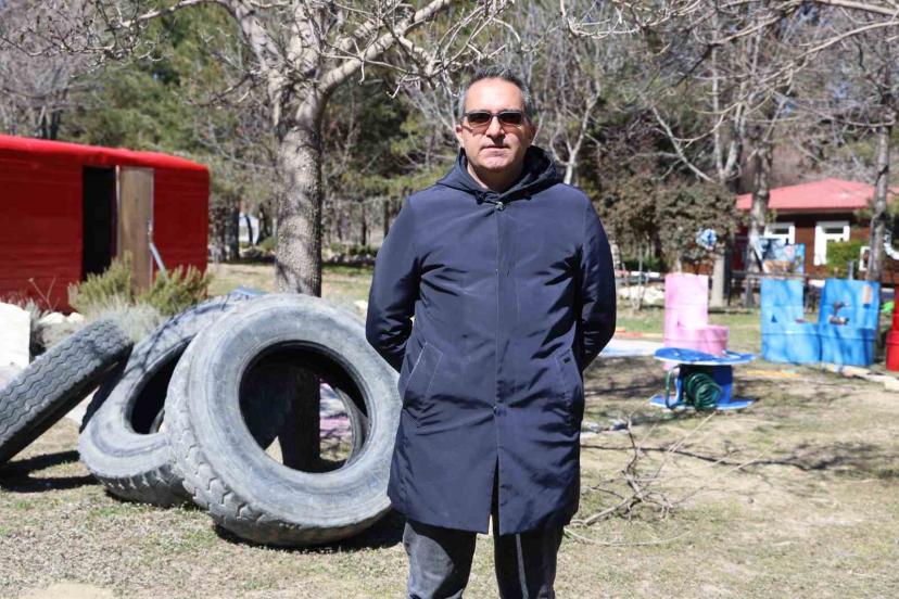 Dünyada ilk olacak projenin, kızının atlı terapi merkezine verdiği olumlu yanıtla başladığını ve engelli ailelere faydası olacağını kaydeden Aydın Demirdağ, "Bulunduğumuz yer Elazığ Hipodromu, atla terapi ve rehabilitasyon hizmeti veren bir lokasyon. 7 yaşında özel bir çocuğun babasıyım ve geçen haziran ayından beri bu merkezden hizmet almaktayız. İlk geldiğimiz gün kızımın stresi nedeniyle ayrılmak üzereydik ancak geri dönüp atla buluşmasını sağladık, o ilk temasta stresli ve gergin olan kızımın atla birlikte nasıl rahatladığını, hatta atın da eş zamanlı olarak esneyip bu enerjiyi aldığını net biçimde gözlemledim. Her hafta fizyoterapist eşliğinde düzenli olarak bu hizmeti aldık ve faydasını gördük. Özel çocuğu olan aileler için bu süreç maddi olarak gerçekten ağır bir yük. Bu süreçte bir yandan hizmeti alırken bir yandan da atla terapi merkezinin daha yeşil ve güzel bir lokasyona taşındığını fark ettik. Bunun üzerine müdürümüzle birlikte oturup çocukları atla buluşmadan önce kademeli biçimde hazırlayabileceğimiz bir duyu kampüsü park alanı oluşturma fikrini konuştuk. Kendi imkanlarımızla hipodromunun atık materyallerini işleyerek bu alanda kullanılabilecek malzemeleri belirledik ve projeyi ekolojik bir anlayışla büyüterek Elazığ modeli olarak tanımladığımız özgün bir formata taşıdık. Dünyada bu formatta bir örnek bulunmuyor ancak Avrupa’daki benzer uygulamaları inceleyip onlardan ilham aldık. Hedefimiz ise özel çocuğu olan ailelerin yaşam boyu hizmet alabileceği sürdürülebilir bir model kurmak oldu ve yaklaşık bir ay içinde saha çalışmalarına hızla başladık. Burada kullandığımız malzemeleri geri dönüşüm olarak değil ileri dönüşüm olarak tanımlıyoruz, yani malzemeyi ham maddesine indirgemek yerine çocukların kullanımına yönelik farklı bir işlev ve anlam kazandırılmış yeni bir materyale dönüştürüyoruz" dedi.
