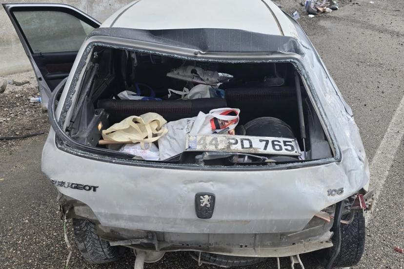 Malatya’da sürücüsünün kontrolünden çıkan otomobil, istinat duvarına çarptı.