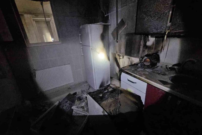 Yangın sonucu konutta maddi hasar meydana gelirken, olayla ilgili inceleme başlatıldı.
