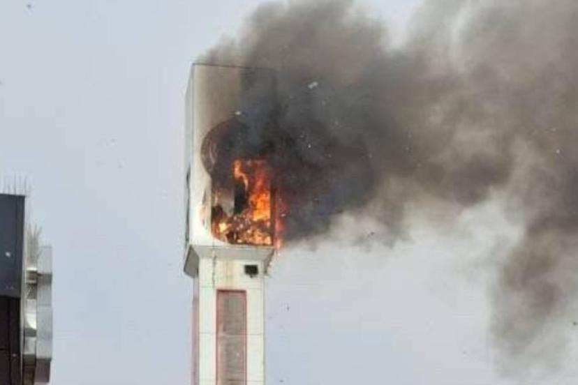 Alev alev yanan direkteki baz istasyonu kısa sürede küle döndü.