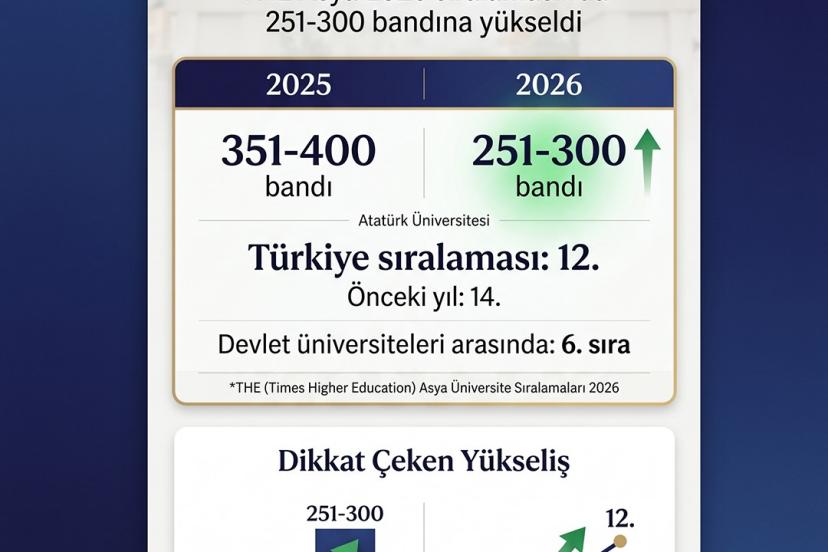 Uluslararası yükseköğretim derecelendirme kuruluşu Times Higher Education (THE) tarafından açıklanan World University Rankings 2026 Asia sonuçlarına göre Atatürk Üniversitesi önemli bir başarı elde etti.