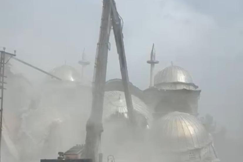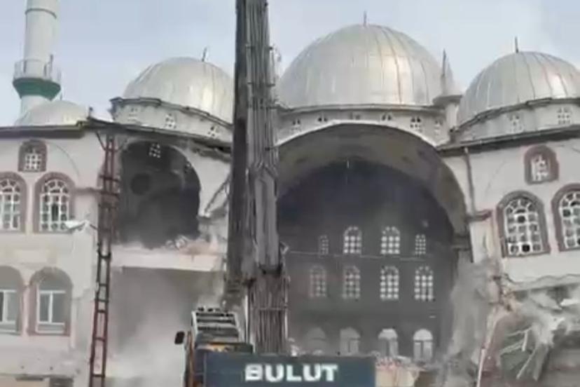 Malatya’da depremde hasar gören cami kontrollü şekilde yıkıldı