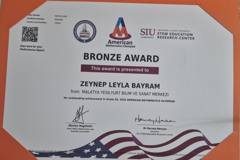 American Mathematics Olympiad (AMO) 2025 sonuçları açıklandı. Analitik düşünme ve problem çözme becerilerinin ölçüldüğü, 39 ülkeden yaklaşık 43 bin öğrencinin katıldığı olimpiyatta Malatya Mehmet Emin Bitlis İlkokulu öğrencileri, dünya sıralamasında derece elde etti.