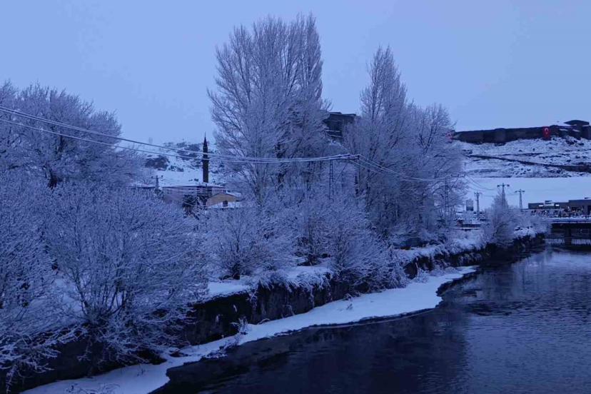 Kar yağışı sonrası tablo gibi görüntüler ortaya çıktı. Kentte kar yağışı aralıklarla devam ediyor.