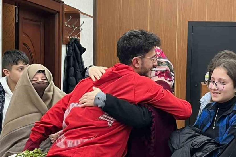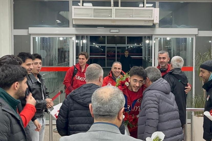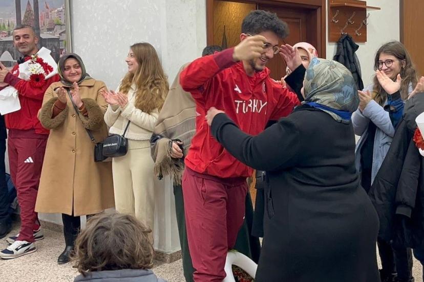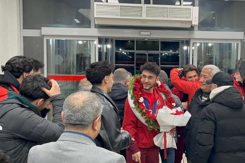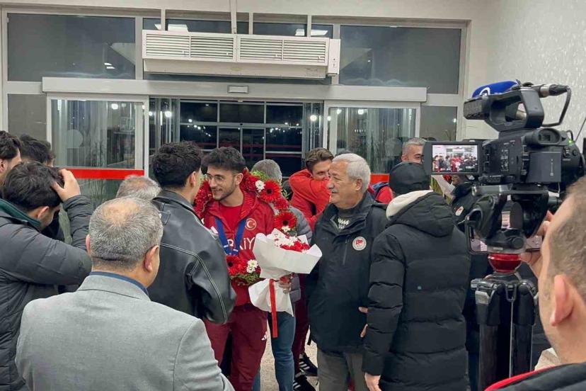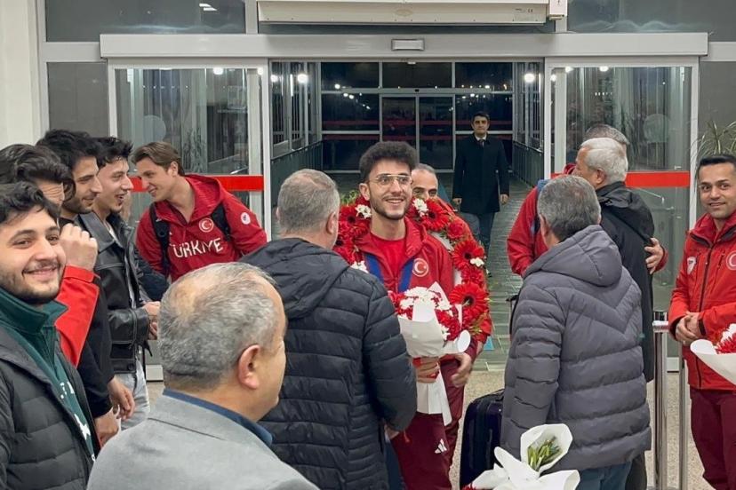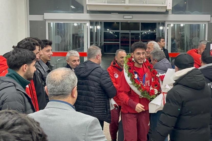 Milli sporcu Furkan Akar çiçeklerle karşılandı