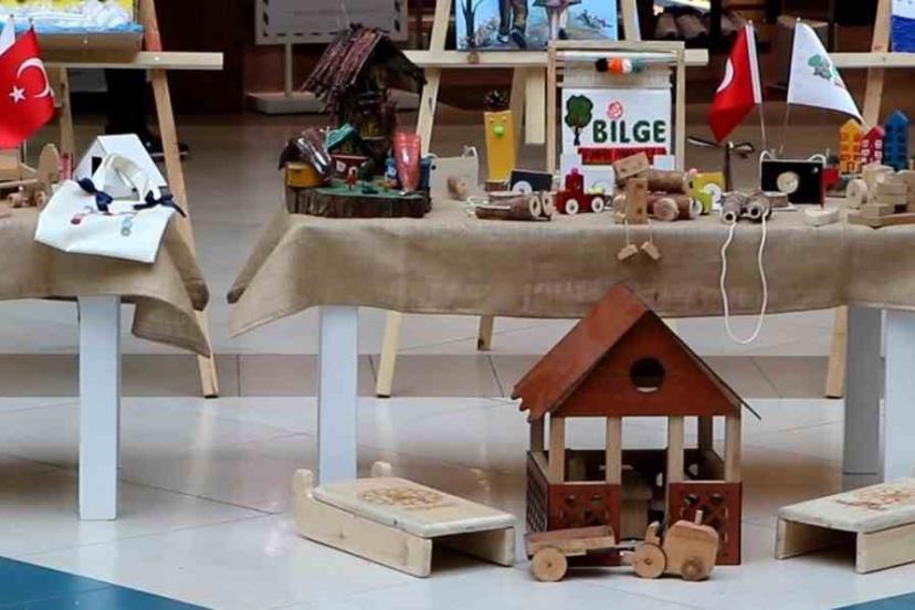 Erzurum’daki Bilge Orman Anaokulu öğrencileri, okuldaki atölyelerde yaptıkları ürünleri sergiye açtı.