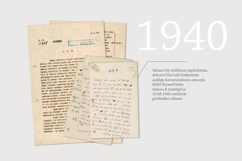 Bu belge, yabancı bir istihbarat şüphelisinin Ankara'nın Ulus semtindeki faaliyetinin açıklığa kavuşturulması amacıyla "aceledir" ibaresiyle gönderilen 16 Ağustos 1940 tarihli istihbarat raporu oldu.