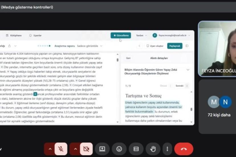 Malatya Turgut Özal Üniversitesi Teknoloji Transfer Ofisi ve Araştırma Koordinatörlükleri tarafından "Bilimsel Araştırmalarda Yapay Zeka Kullanımı" başlıklı çevrimiçi etkinlik düzenlendi.