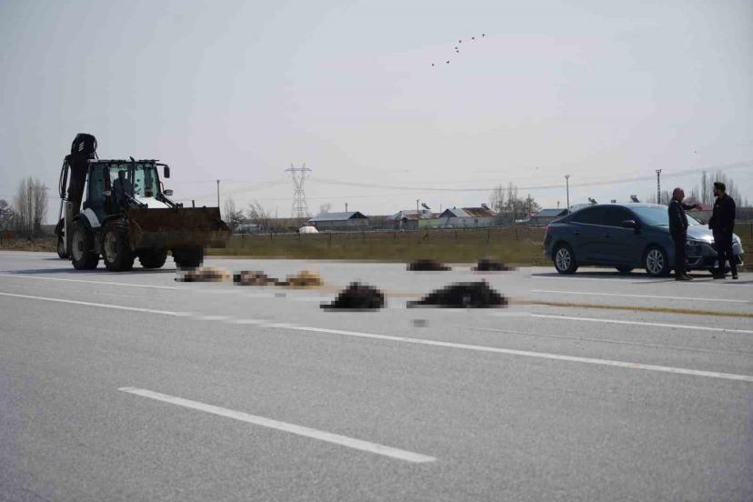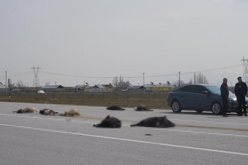 Muş-Bingöl karayolunda SUV tipi aracın keçi sürüsüne çarptığı kazada 10 hayvan telef oldu.