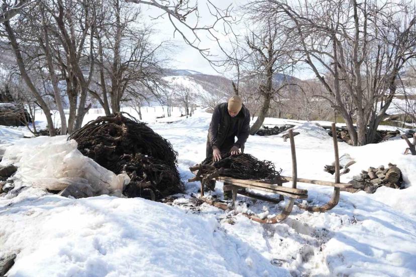 Muş’ta besiciler dededen toruna aktarılan geven otu geleneğini zorlu kış şartlarına rağmen sürdürüyor.