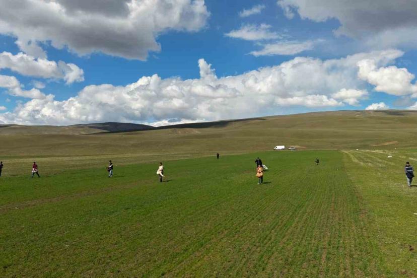 Muş’ta çiftçiler tarlaya indi: Gübreler imece usulü ile serpildi