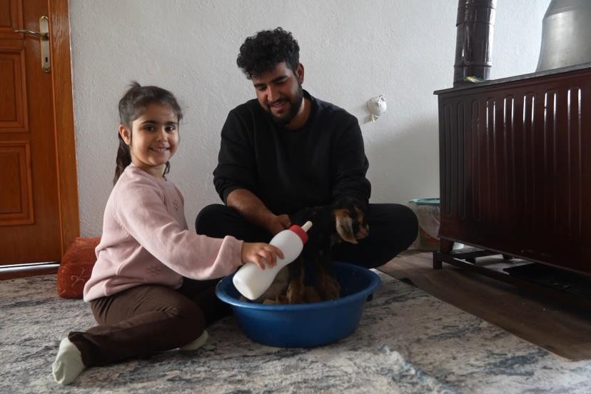 Amcası ile birlikte oğlağın bakımını üstlenen 5 yaşındaki Eliz Serra Güngör, "Bu benim keçim, buna çok iyi bakıyorum. Keçim hastalandı diye evde bakıyorum. Süt veriyorum ve saçını tarıyorum" diye konuştu.