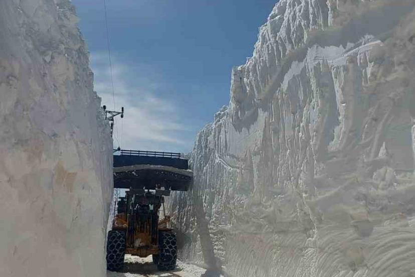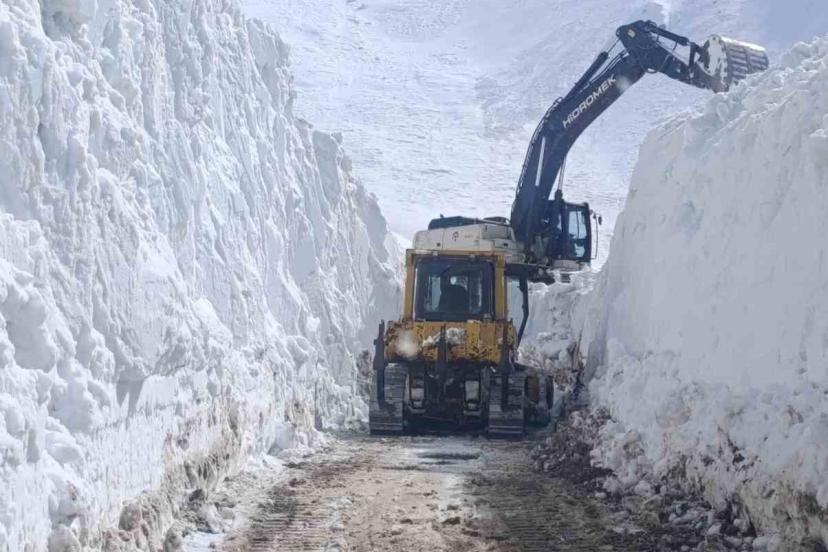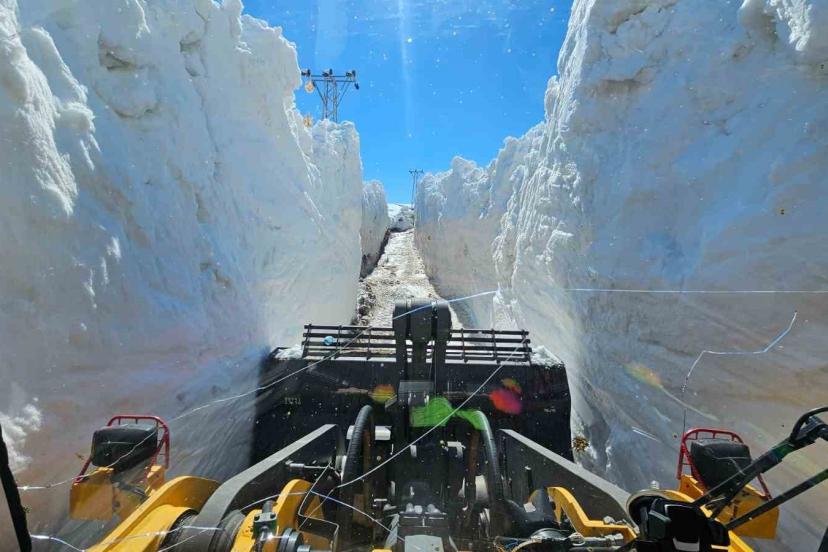 Nisan ayına rağmen metrelerce yüksekliğe ulaşan kar birikimiyle mücadele eden ekipler, kapalı üs yollarını en kısa sürede ulaşıma açmak için yoğun mesai harcıyor.