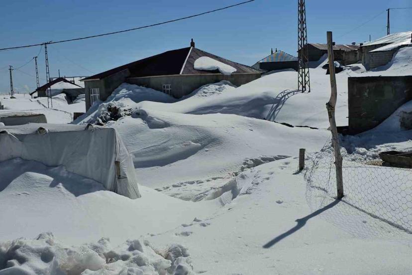 Bitlis’in Adilcevaz ilçesi Süphan Dağı eteğindeki Kışkılı Mahallesi, nisanda yer yer 3 metreyi bulan karla baharı bekliyor.