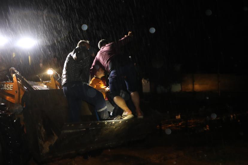 Nizip'i sel vurdu. Mahsur kalanlar iş makinesiyle kurtarıldı