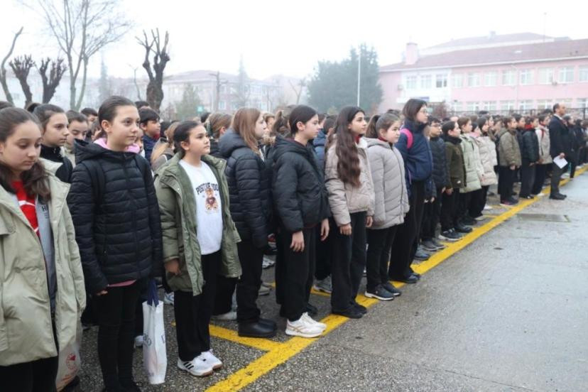 Okullarda 6 Şubat depremlerinde hayatını kaybedenler için saygı duruşu