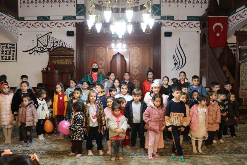 Camiye geçen çocuklar, balonlarla süslenen ortamda teravih namazı saatine kadar gönüllerince eğlendi. Aileleriyle birlikte namaz kılan miniklere program sonunda pamuk şekeri ve balon dağıtıldı.