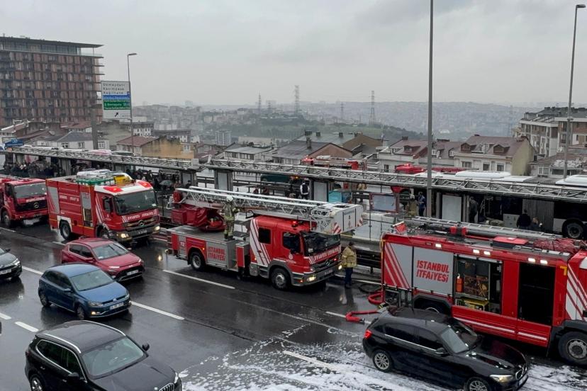 Metrobüste hasara yol açan yangın nedeniyle seferlerde bir süre aksama yaşandı.