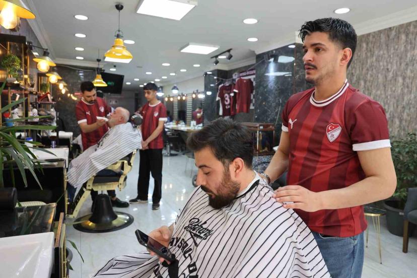 TFF 2. Lig Kırmızı Grup’ta play-off etabına kalmayı garantileyen Elazığspor’da hedef şampiyonluk olarak belirlenirken, şehir esnafı da takıma desteğini artırdı. Bir kuaför salonunda tüm çalışanlar bordo-beyaz formalarla hizmet verirken, müşterilere de Elazığspor forması hediye ediyor.