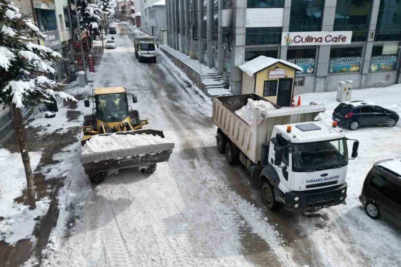 Çalışmalar kapsamında iş makineleriyle bir noktaya toplanan kar yığınları, kamyonlara yüklenerek ilçe dışındaki boş alanlara taşınıyor. Belediye ekiplerince 2 günde yaklaşık 600 kamyon kar ilçe merkezinden uzaklaştırıldı. Kar taşıma işlemlerinin, yolların genişletilmesi ve buzlanma riskine karşı kritik önem taşıdığı belirtildi.