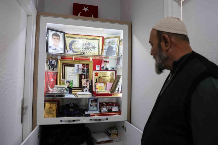 2016 yılında şehit düşen polis memuru Mustafa Yıldırım’ın babası Hulusi Yıldırım, oğlundan kalan ve 10 yıldır çantasında muha...