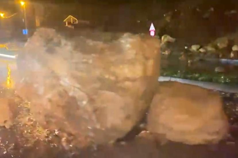 Hakkari’nin Şemdinli ilçesinde sağanak nedeniyle yamaçtan kopan kaya parçaları kara yoluna düştü.